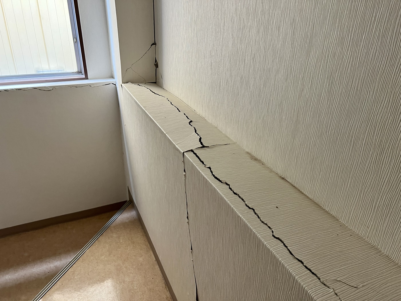 亀裂の走った壁を修繕し、