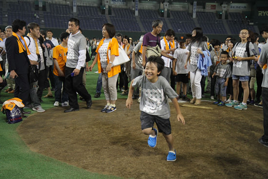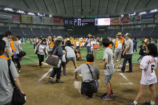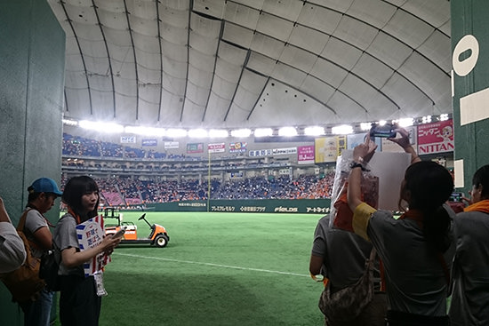 私の母は東京ドームのグラウンドに降りたいと
