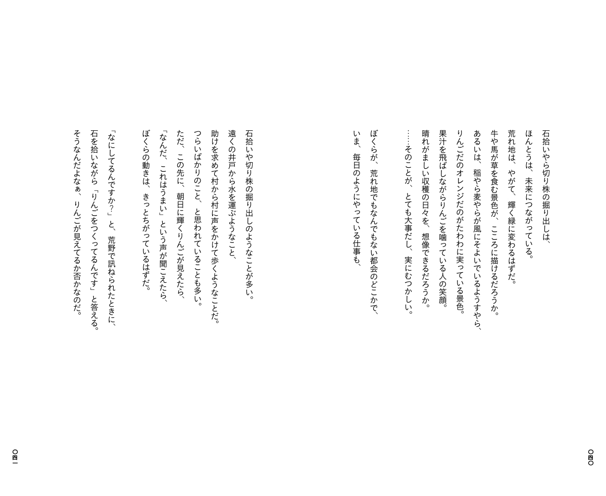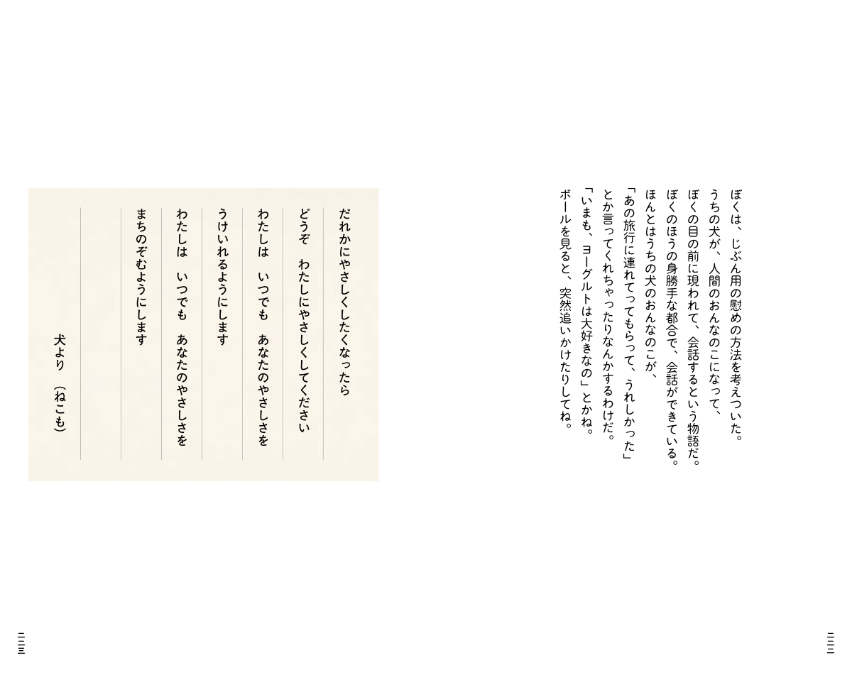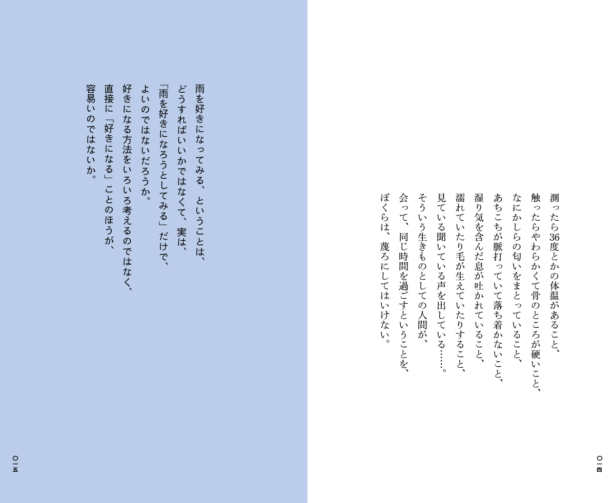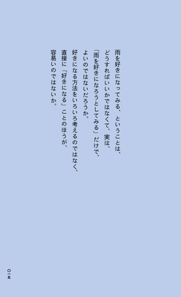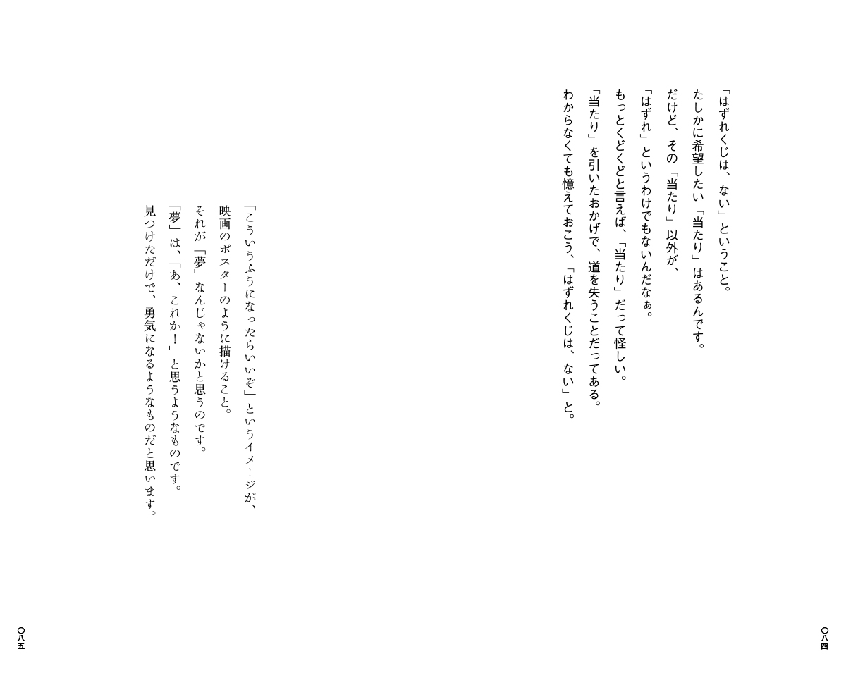 本のなかには、ぜんぶで239のことばが収められています。すっと読めるような短いことばが多いですが、ひとつのエッセイをまるまる収録したような長いものもありますし、連作のようになっていることばもあります。