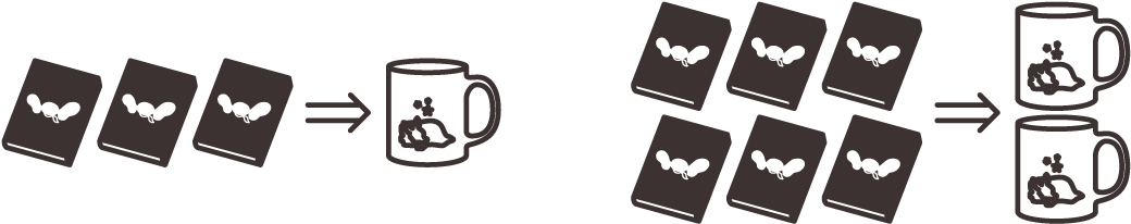 つまり、6冊だと2個。8冊でも2個。12冊だと4個。