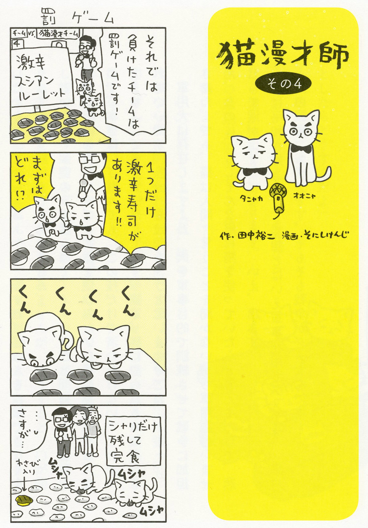 ▲著書『猫と田中』の中には、そにしけんじさんとの共作マンガがたびたび登場します。