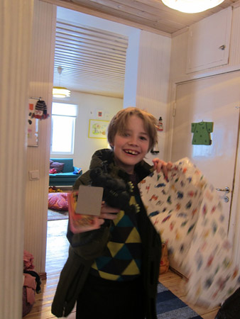 お兄ちゃんには、ゴジラの人形をお土産に。