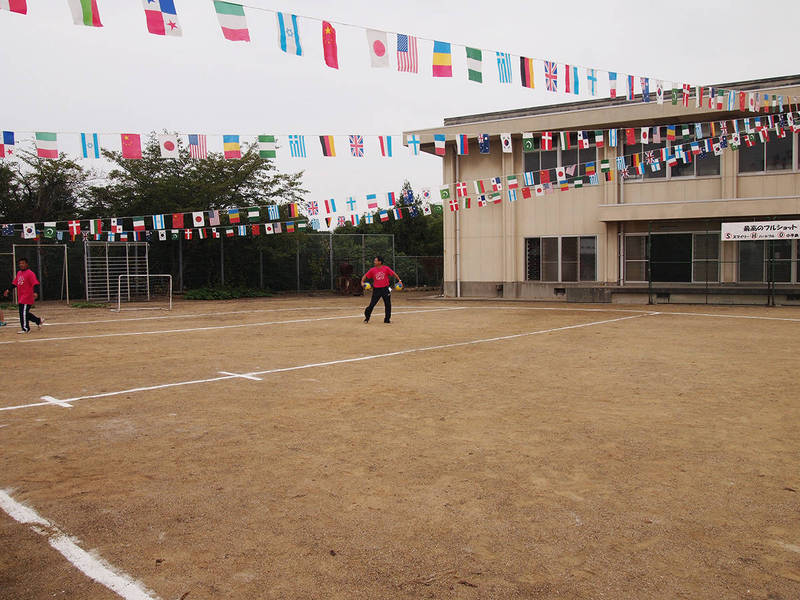 ボールを抱えて校庭をかけまわる先生、大忙しです。