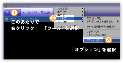 WindowsMediaPlayerの設定を下記のように変更しておくと、