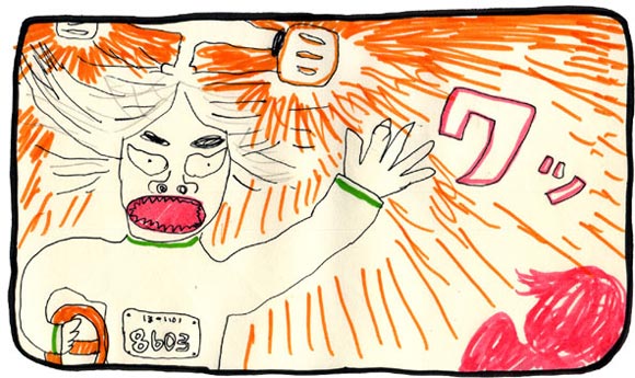 彼女が通る時に「ワッ!」と驚かしてみせた。