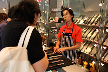 | お店の人 | しかし実際のところは、 両刃のものは利き手がどちらでも 使っていただいて全然問題はありません。はい。 (ヘンケルスで熱心に取材中ですが、 つづきまーす!) |