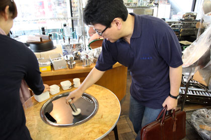 | お店の人 | うーん、そういうわけでもないんですけども、 いまや、かっぱ橋でなくとも 入手できるブランドでございますから。 |