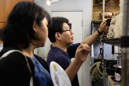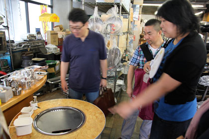 | 飯島 | そうしましょう。 (歩きながら) これが、もし海外だったら 端から買ってますね。 かっぱ橋だから、 また来れるって思うので いまは買わないですけれど。 |