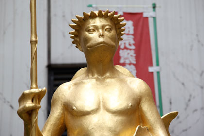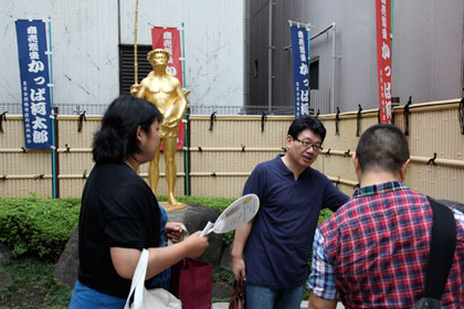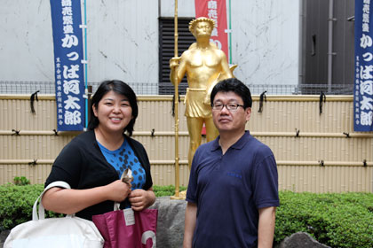 | ── | 銅像というか、金色の像が! 合羽橋のカッパは、結構筋肉質。 河童に由来した地名なんでしょうか。 |