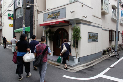 | 飯島 | 確かに。最後に買えばいいやと思っても つい買っちゃったりしますもんね。 あ、つきました、ロシア料理の 「ストロバヤ」です。 ボルシチとピロシキを食べましょう。 |