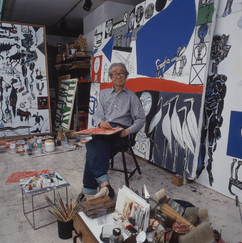 1902年香川県生まれ。画家。東京美術学校で藤島武二に師事。1938年渡仏し、アンリ・マティスに学ぶ。戦後は20年間にわたりニューヨークを拠点に活動する。帰国後は東京とハワイを行き来し生涯現役で制作を続ける。1991年故郷に丸亀市猪熊弦一郎現代美術館開館。1993年90歳で死去。