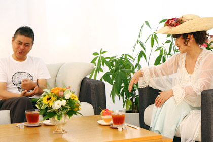 | 黒柳 | 耳のところまで水につかって、 ヨガの格好で、手をくんで、 座禅みたいなポーズで浮いてるわけ。 それをCMで名高さんがやろうとするんだけど、 ぶくぶくぶくぶく、瞬間的に沈んじゃうんです。 そのお坊さんは名高さんのことを見て 「はっはっは」と笑ってました。そして、 「この人は10年間 水中ヨガの練習をしたのです」 なんて、画面に書いてありました。 |