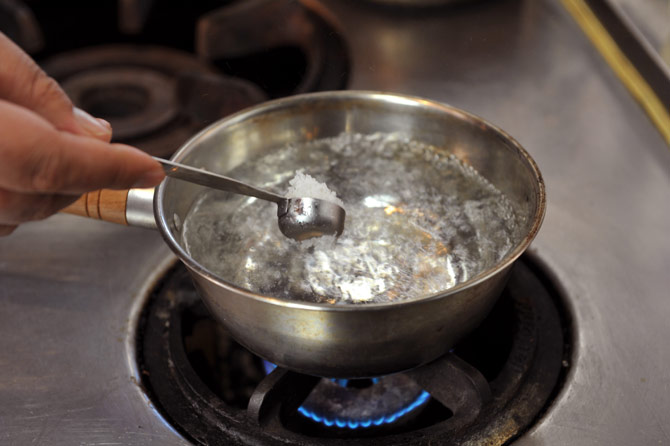 400mlの水を鍋に入れ沸騰させ、塩小さじ1を加えます。