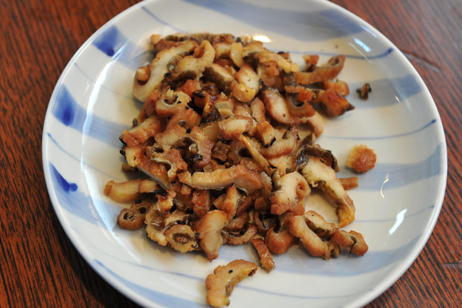 焼きあなご1本は、5ミリの厚さに切っておきます。