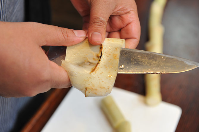 うど1本。よく洗って皮をむいて。