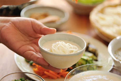 それこそ、韓国で食べた、豆乳の麺を応用したり。