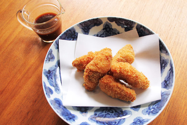梅酢に軽くくぐらせて下味をつけて、フライにしています。
