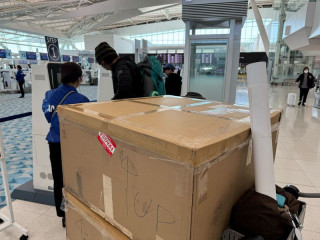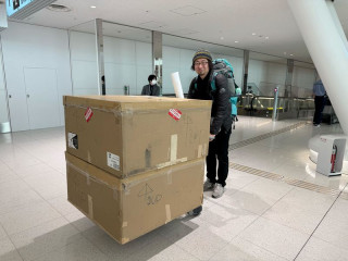 ビッグアースボール、再びアメリカへ! さかのぼること約1年前・・・ ほぼ日のアースボールの海外版、 Hobonichi Globeの宣伝のため、アメリカ・テキサスにビッグアースボールを送ったことがありました。 (そのようすはこちらをご覧くださいね) そのときは、なんと書類の不備でイベント最終日までに届かないという アクシデントに見舞われた我々。 1年越しのリベンジ! ということで、Hobonichi Globeが出展するニューヨークのおもちゃの見本市、 Toy Fair New York 2025にて、ビッグアースボールの展示に再トライしてみることにしました。 前回の反省を活かして、今回はなんと「手持ち」です。 笑える大きさの荷物とともに、颯爽と現れたアースボールチームの 想像よりシュールな光景です。 無事検査を終え、なんとかビッグアースボールを、大型貨物として預け入れできました。 果たして、ビッグアースボールは無事アメリカに入国し、日本へ帰ってくることができるのでしょうか? 2025/02/27 11:03 |