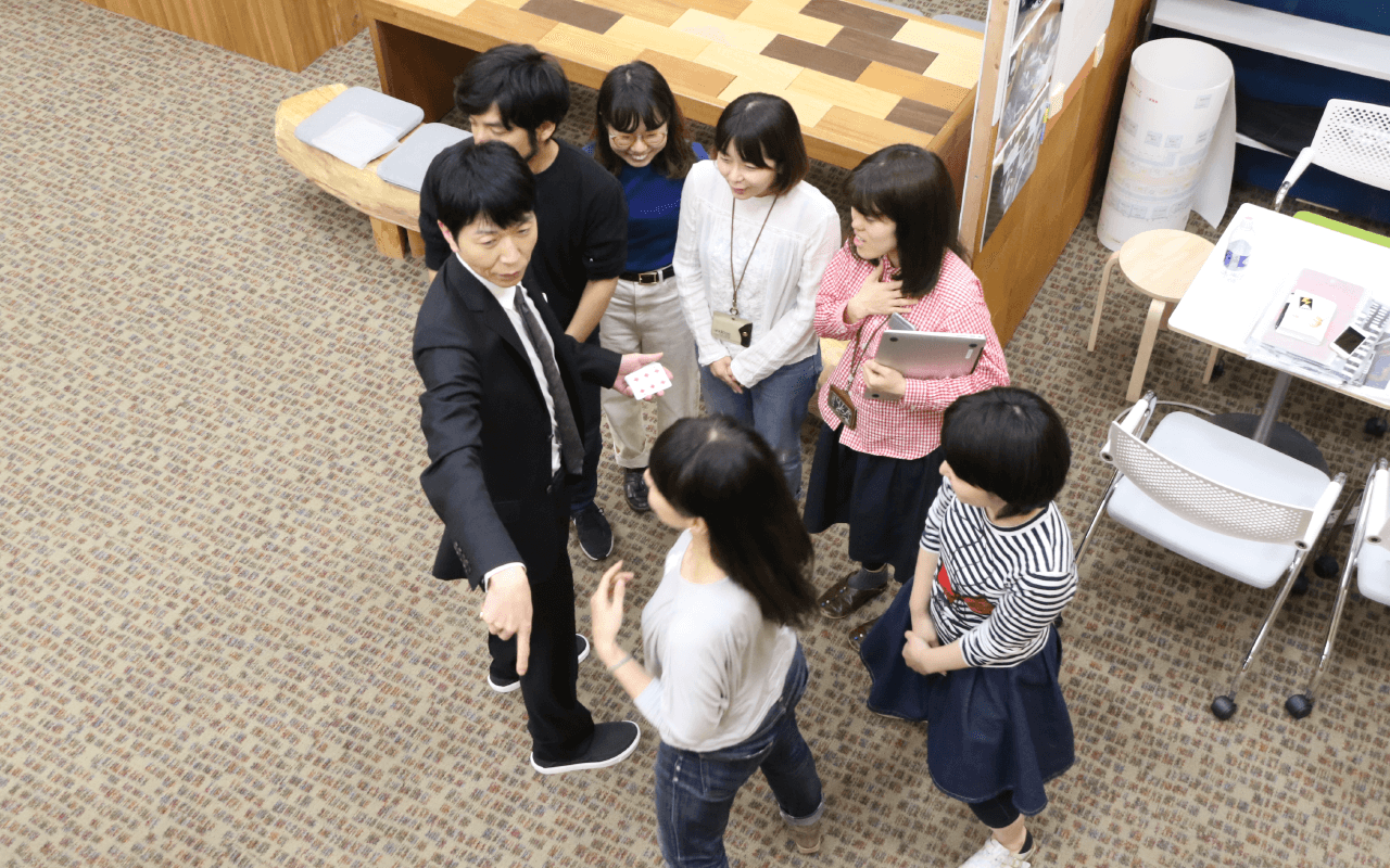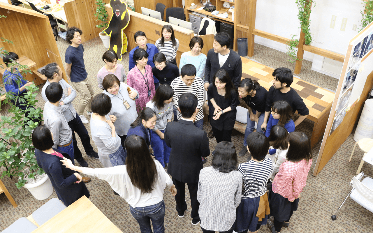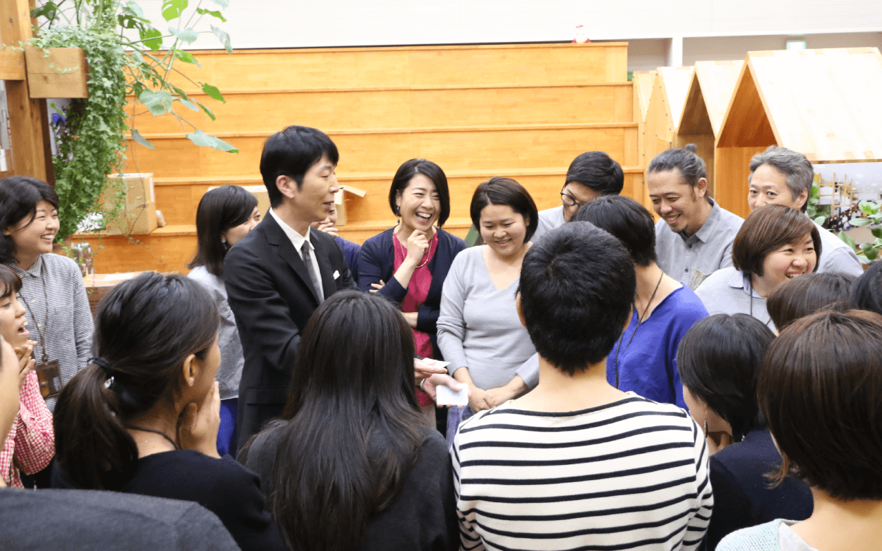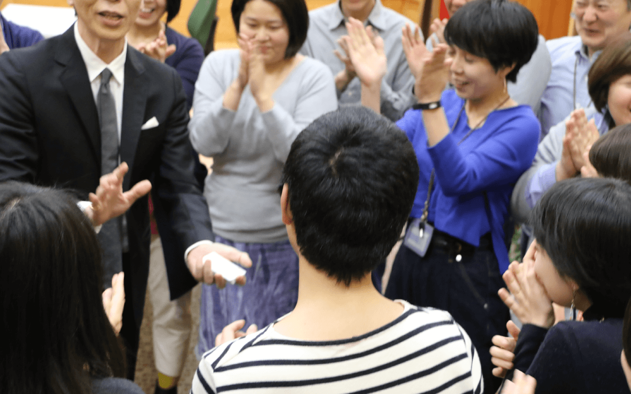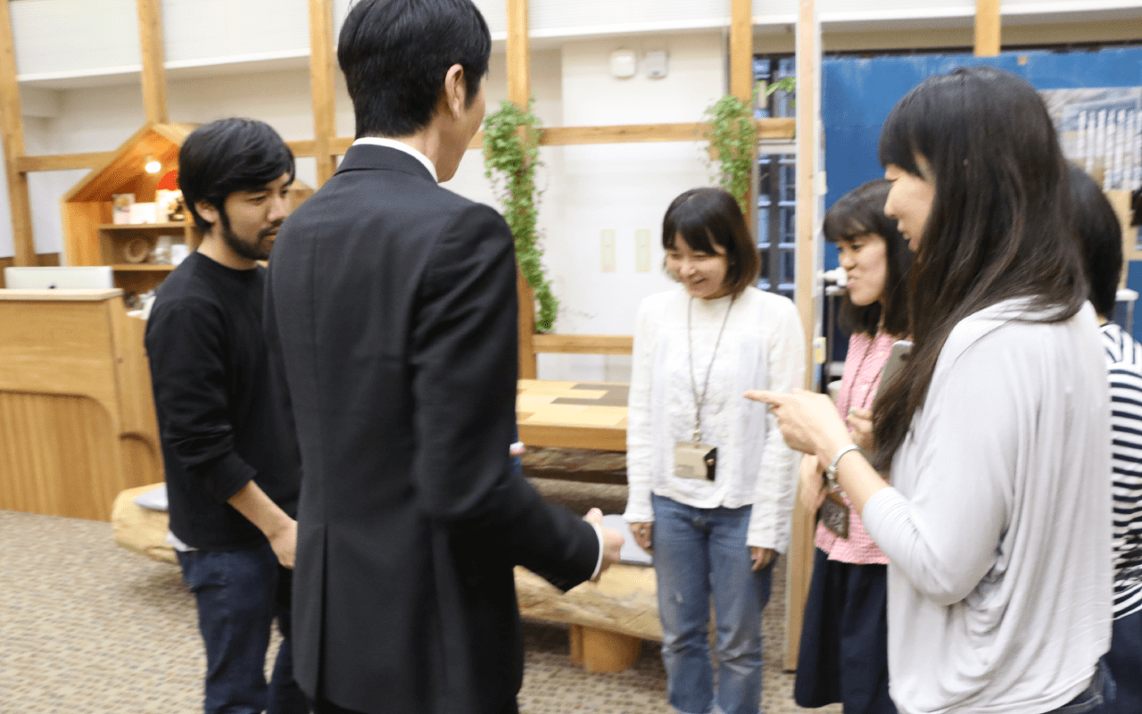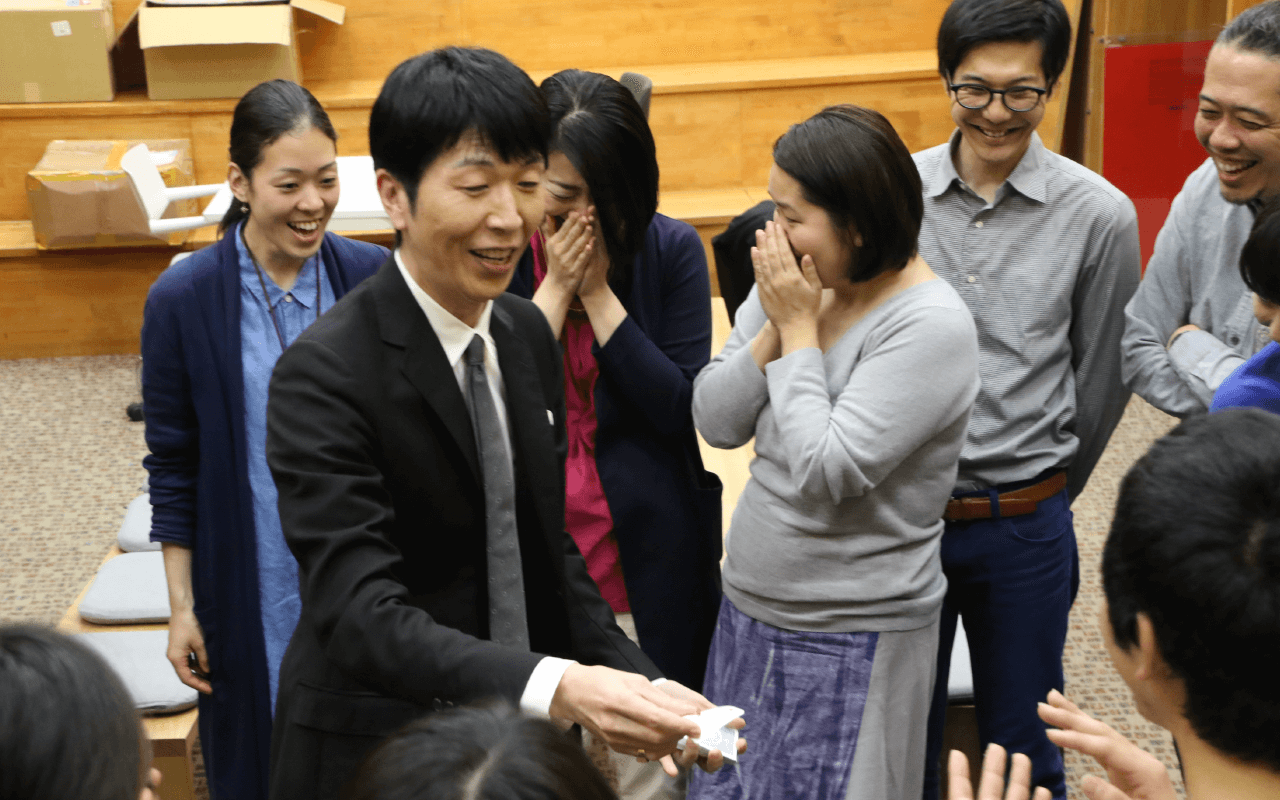 ▲一瞬で、20人以上の乗組員にかこまれる前田さん。