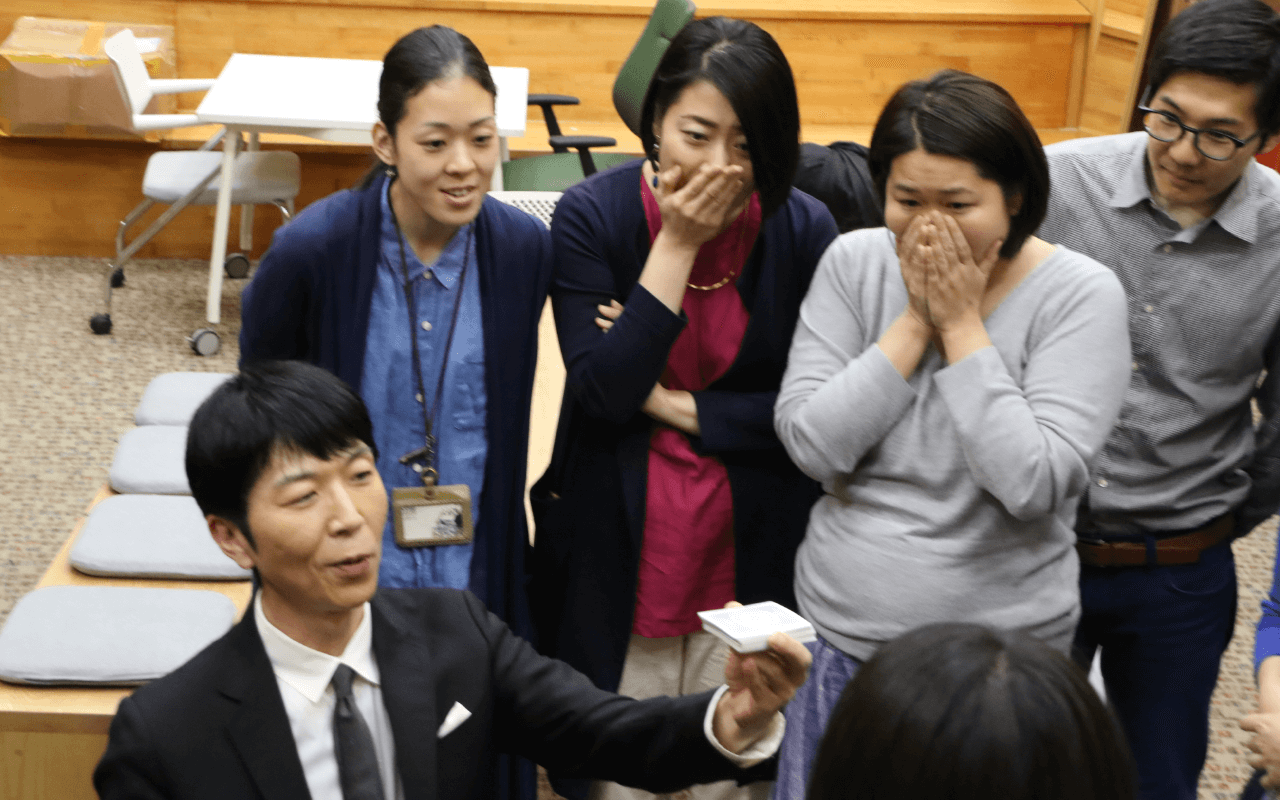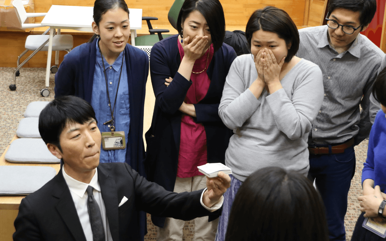 トランプの中にいれて‥‥指を鳴らす。(パチン!)