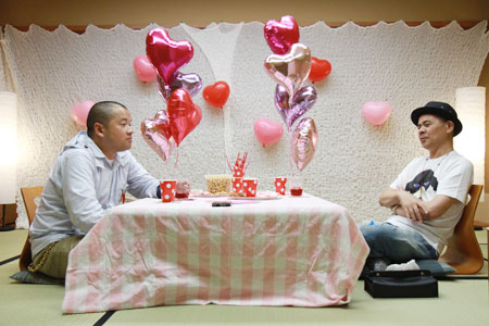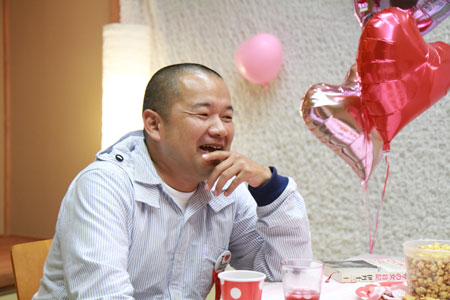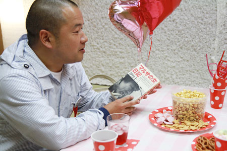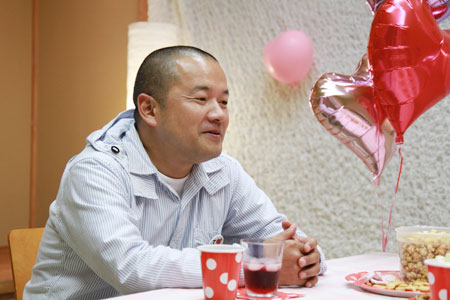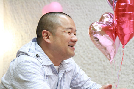 | 糸井 | うちの社員がこっそり飾り付けてたんですよ。 なんだかすみません、 はじめましてなのに、こんなファンシーな場所で。 |