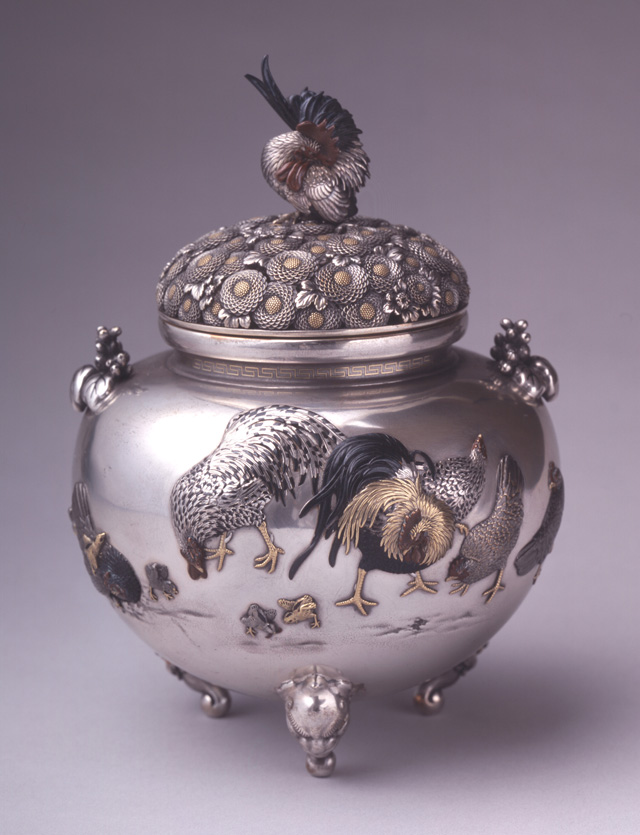 こちらは、正阿弥勝義の「群鶏図香炉」。 - 蓋にあしらわれた無数の菊、