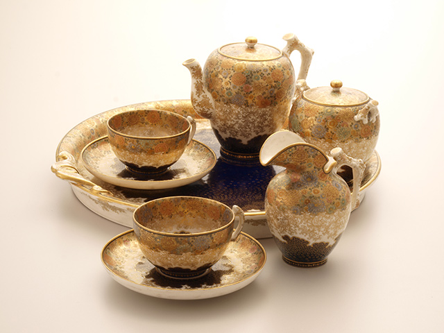 7代錦光山宗兵衛《菊唐草文ティーセット》