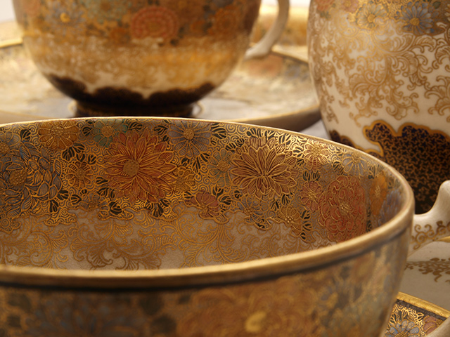 7代錦光山宗兵衛《菊唐草文ティーセット》部分