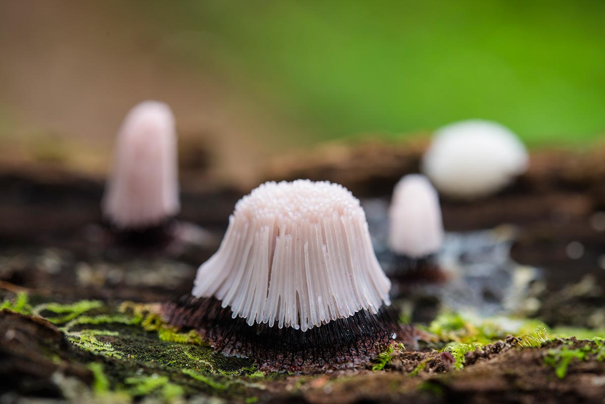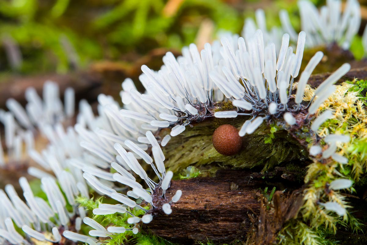 粘菌の子実体は、色や形が多様で、