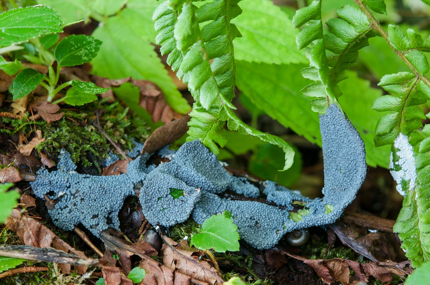 ムラサキホコリの仲間は、野外で最も目にする粘菌のひとつ。