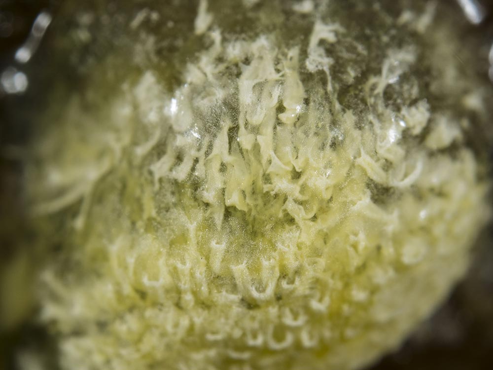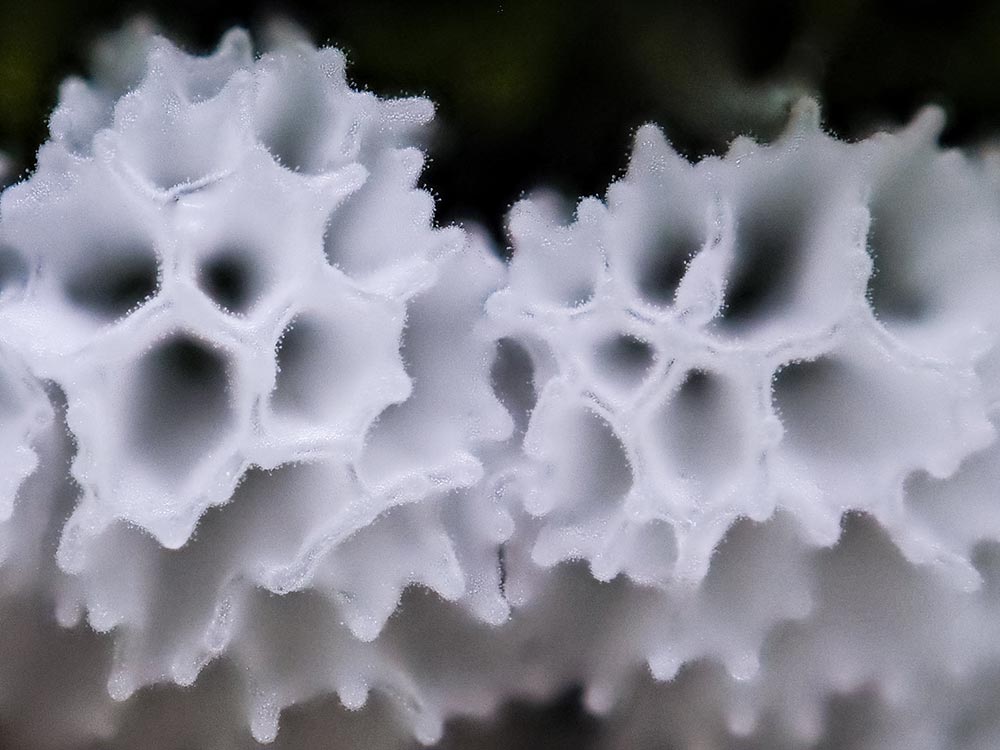 拡大してみると、子実体(担子体)の外側に胞子がびっしり