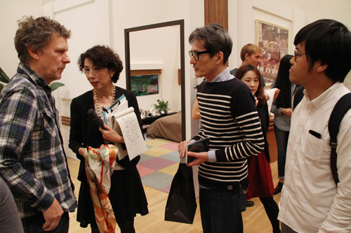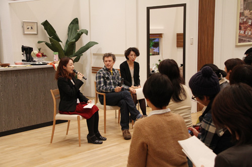 ▲司会の方・ゴンドリー監督・通訳の方。