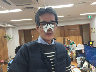 彼はなぜメガネの下にティッシュをはさんでいるのか?