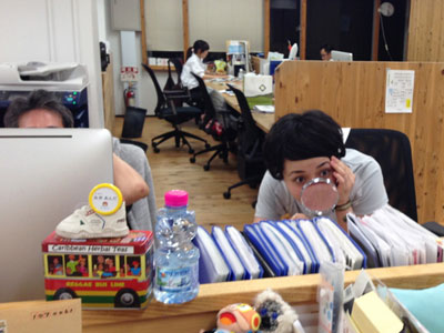 ハリーの机の本の隙間に潜り込んだカナブンです。