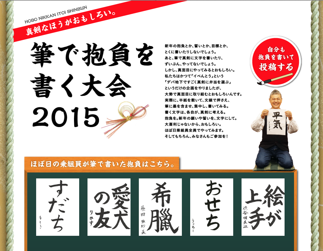 みなさま、お正月に「筆で抱負を書く大会2015」という