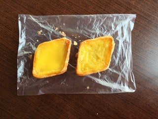 ふつうのエッグタルトと、 ココナッツのはいったエッグタルト。 |