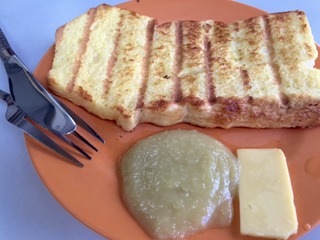 カヤトーストも絶品です。 このあと、三軒のお店で カヤトーストをいただきましたが、 ここは、唯一のふわふわ系のカヤトーストです。 ほかはカリっとしていました。 |