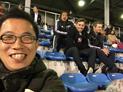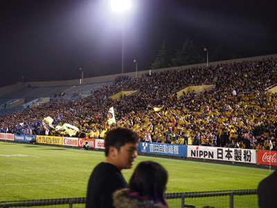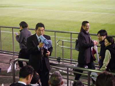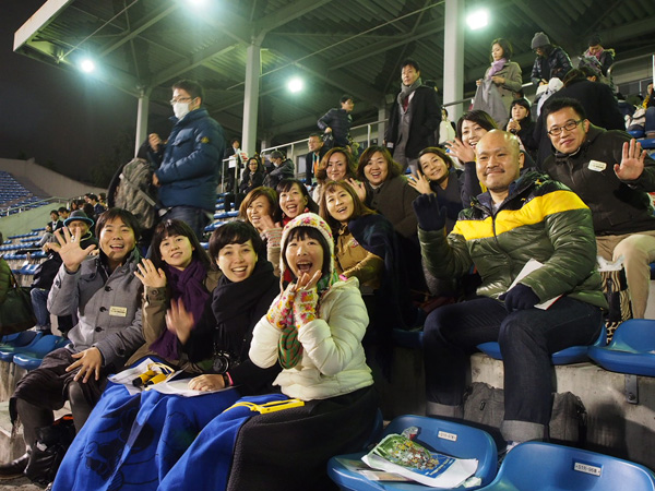 けっこう近いところに座るんですね、それぞれの応援団。