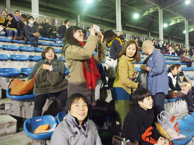 ▲シオリ撮影。夜のラグビー場はきれいだ、と!