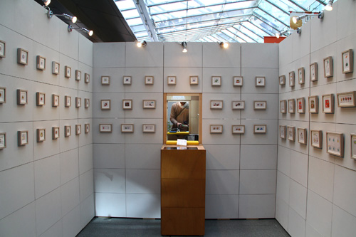 ▲整然とならんだ、大橋歩さんの愛らしい原画60点。静謐なムードの店内です。
