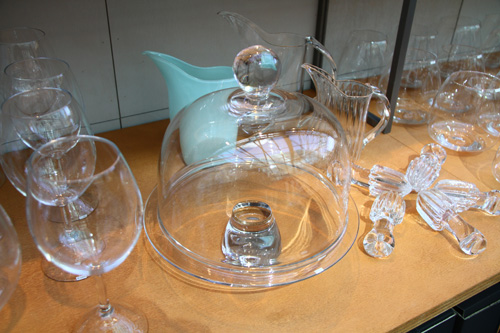 ▲圧倒的に美しい宙吹きのガラス作品がならぶ「コップ屋タカハシヨシヒコ」。