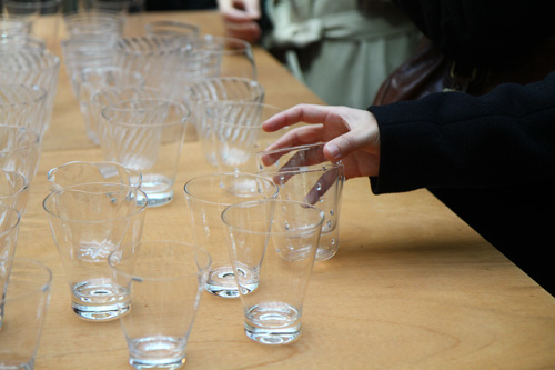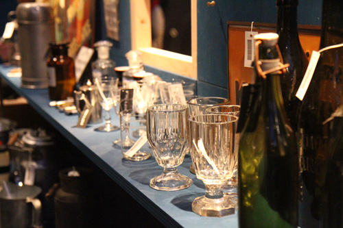 丁寧に磨き上げたグラスやびんが、凛と並んでいます。