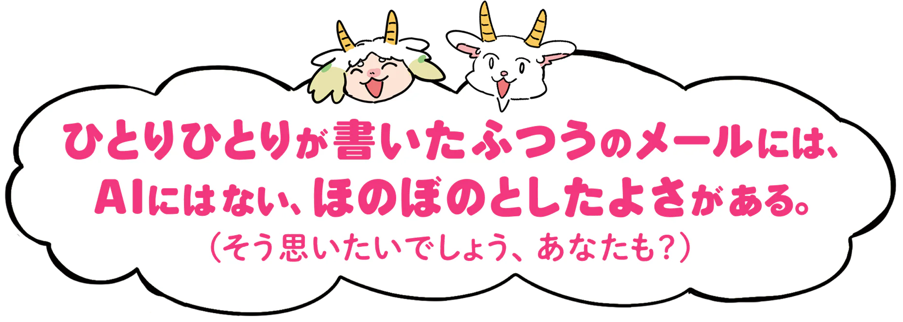ひとりひとりが書いたふつうのメールには、AIにはない、ほのぼのとしたよさがある。(そう思いたいでしょう、あなたも?)