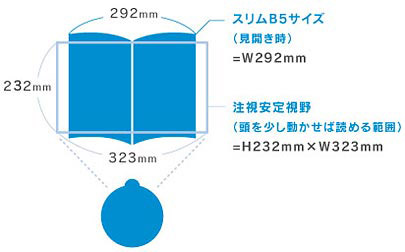 「頭をほんの少し動かすだけで読める範囲」