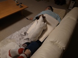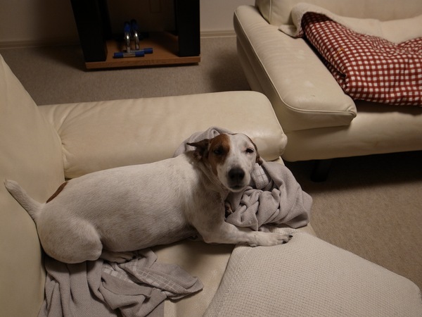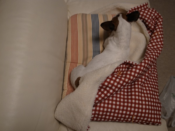 犬はお腹をあっためてます。