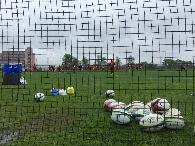 おとうさんは、ラグビーの練習です。