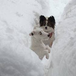 新雪は、犬ごころを刺激します。