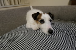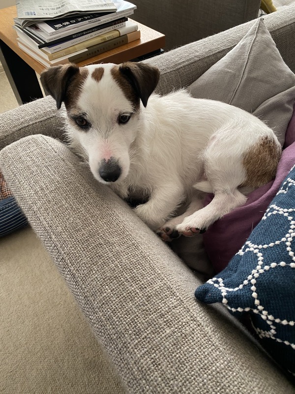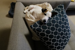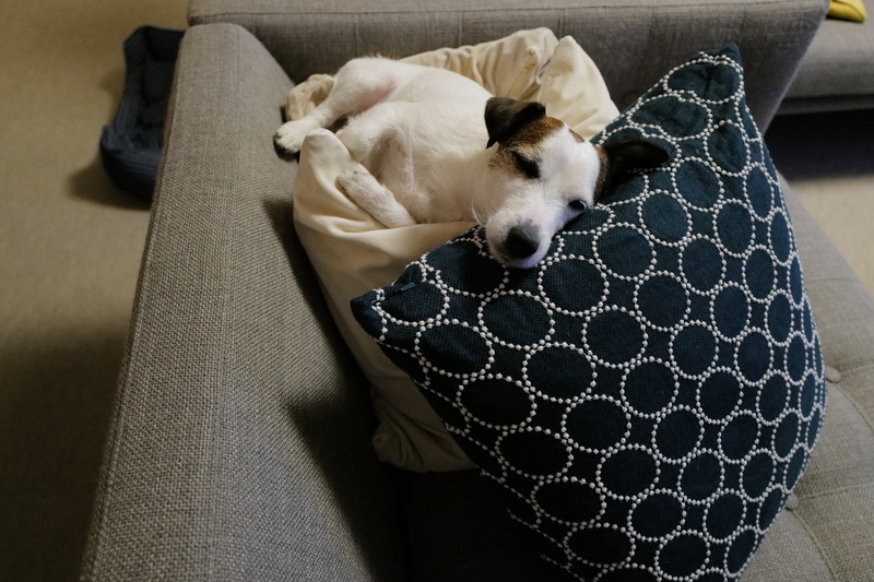 しっぽは、ただ単に、ソファの角に、
