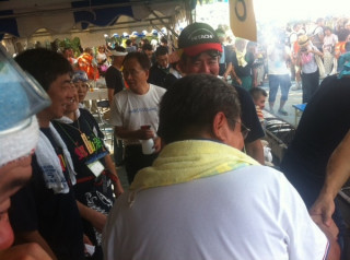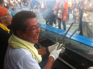 ふらりと参加したおおたかです。 幸運にも、4800番台のさんま整理券をゲット! さんまをもらえる列に並んでいたら、 なんと社長が焼いているではないですか!