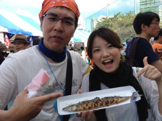 盛り上がってます。 アタマにさんまを乗せたひともいた!